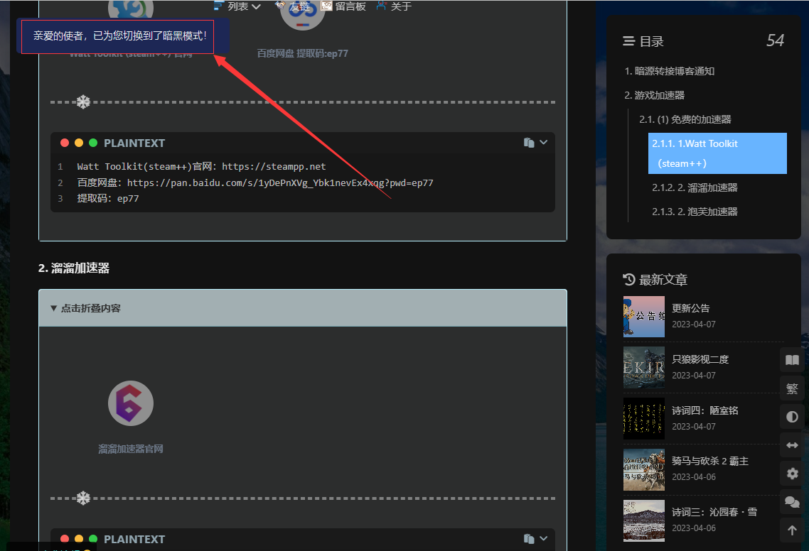 增加了在暗色模式下会有流行的效果!